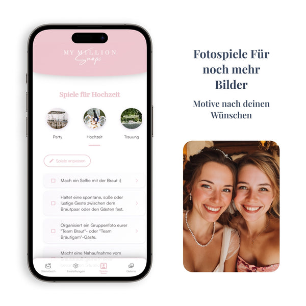 Noch mehr schöne Hochzeitsbilder - Durch die App und die Foto-Spiele werden deine Gäste noch mehr Bilder knipsen